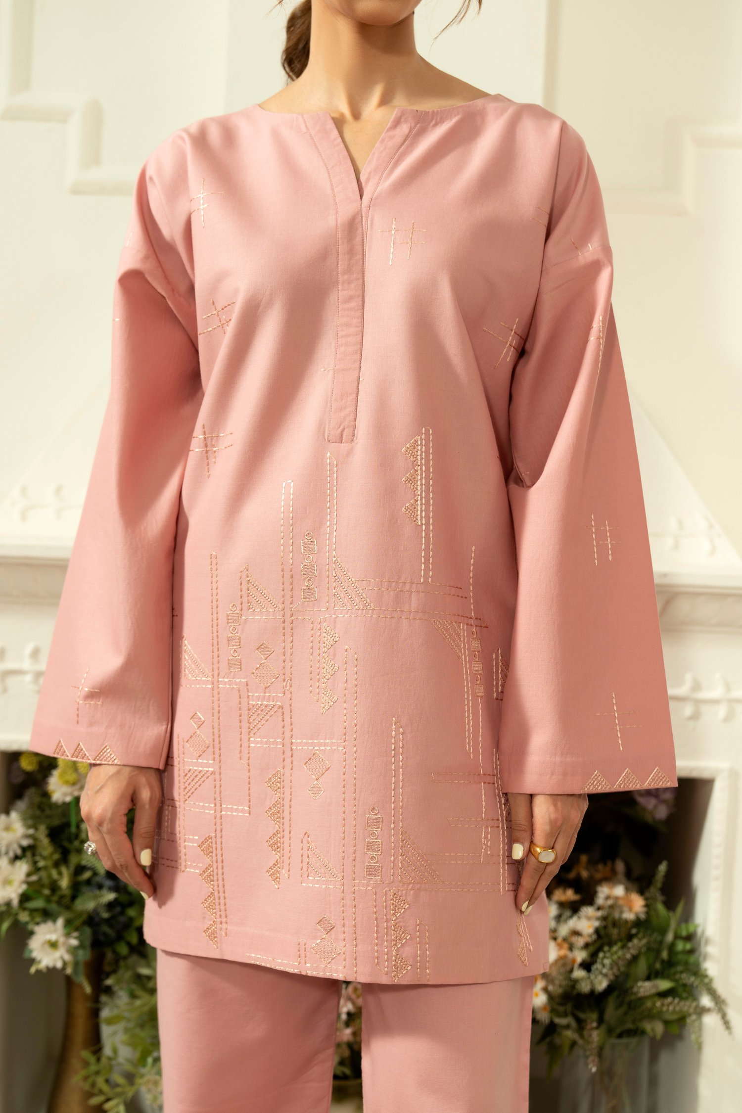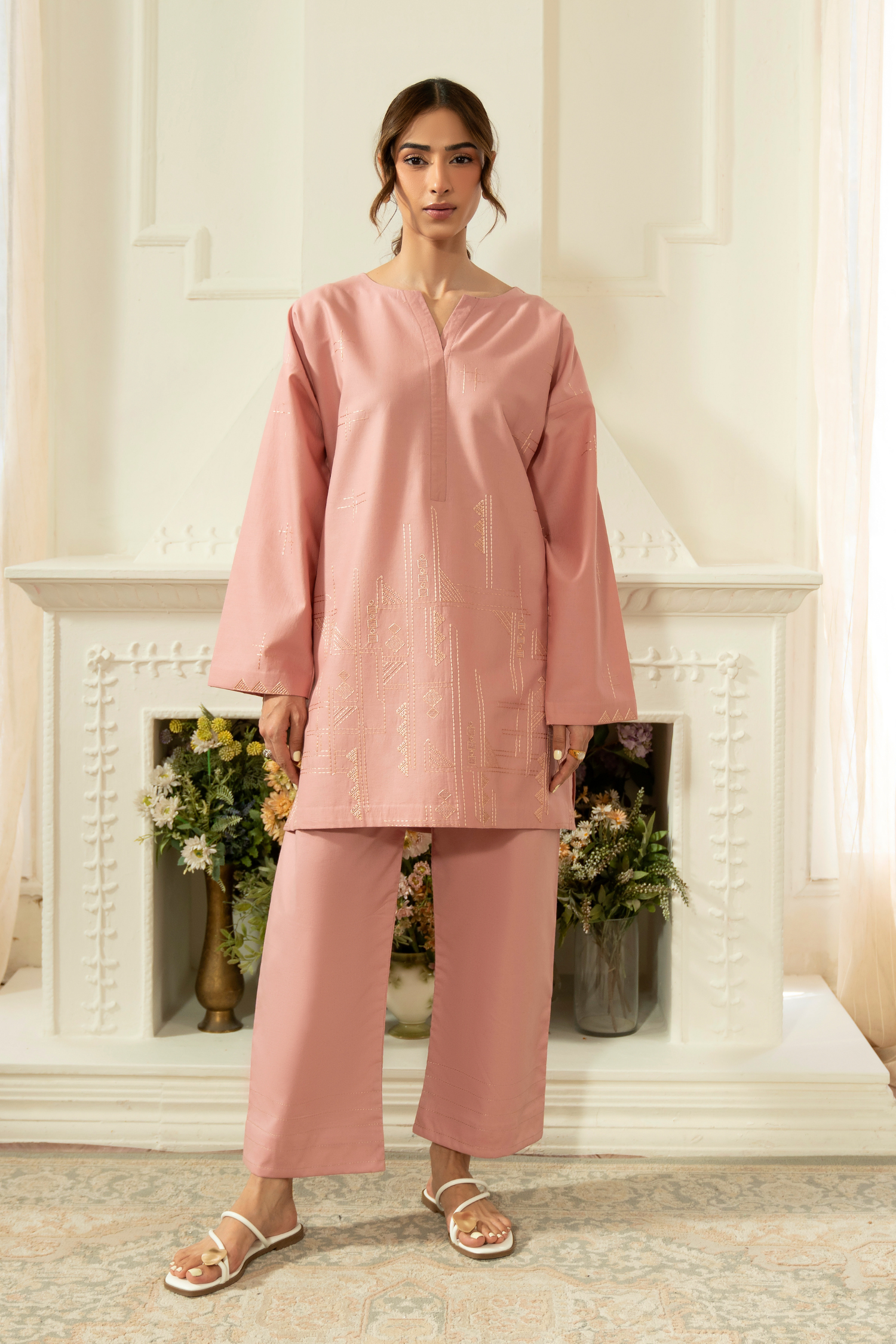 This set includes a relaxed fit embroidered shirt and full length trouser. In-house premium cotton. Best suited for summers.